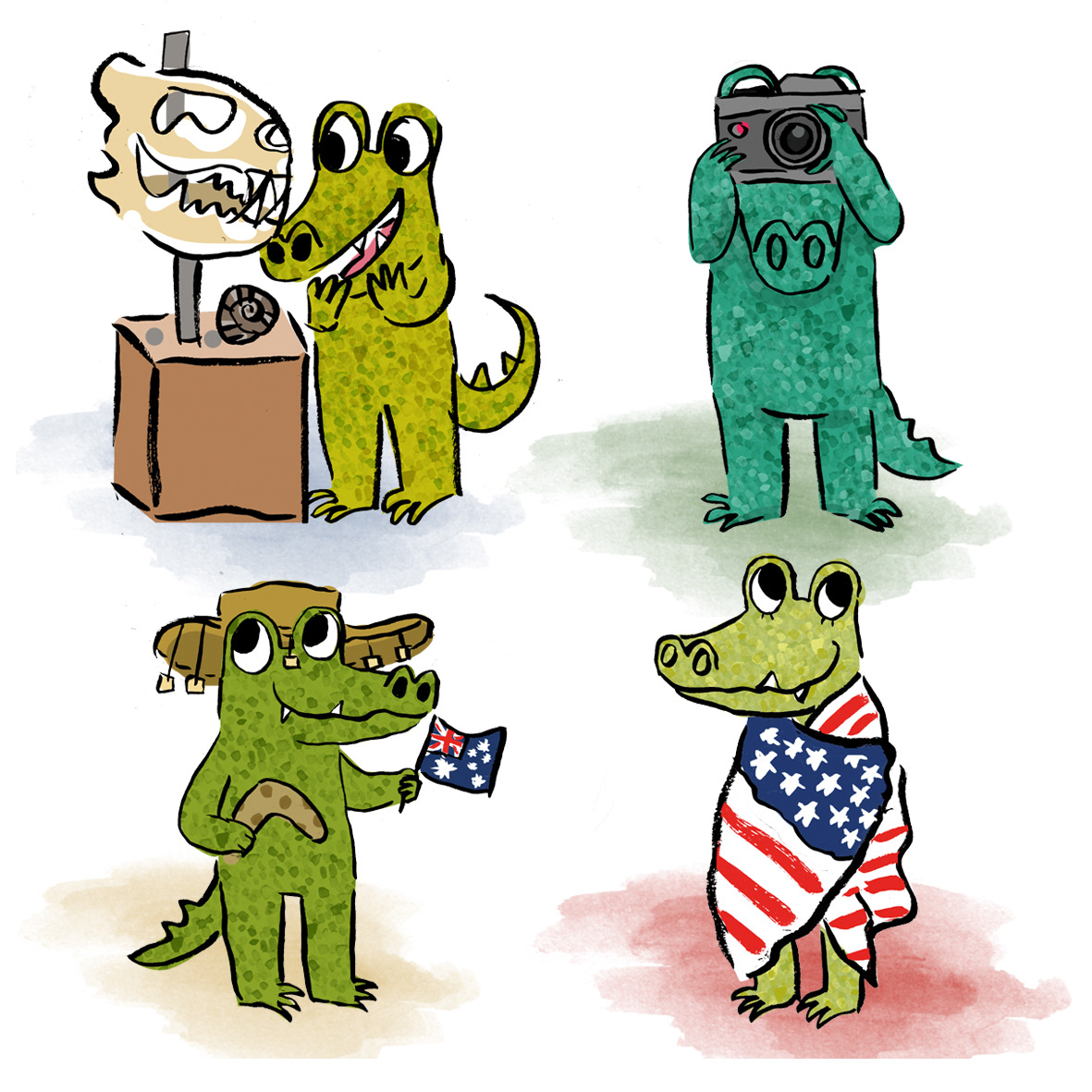 Crocodile besties taking off for a winter break. Where will they be going? Somewhere chillier of course! The only problem is keeping their cold blood warm.
